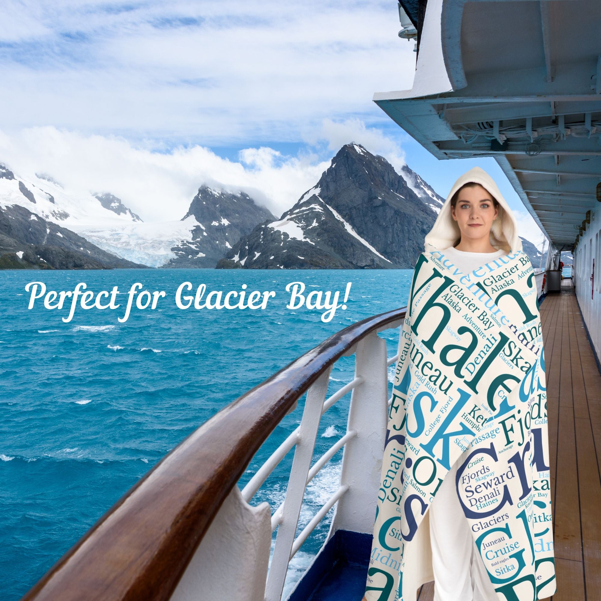 Stay warm and cozy with our Alaska Cruise Hooded Sherpa Fleece Blanket! Perfect for chilly cruise mornings on the balcony or relaxing at home dreaming of glaciers and fjords.