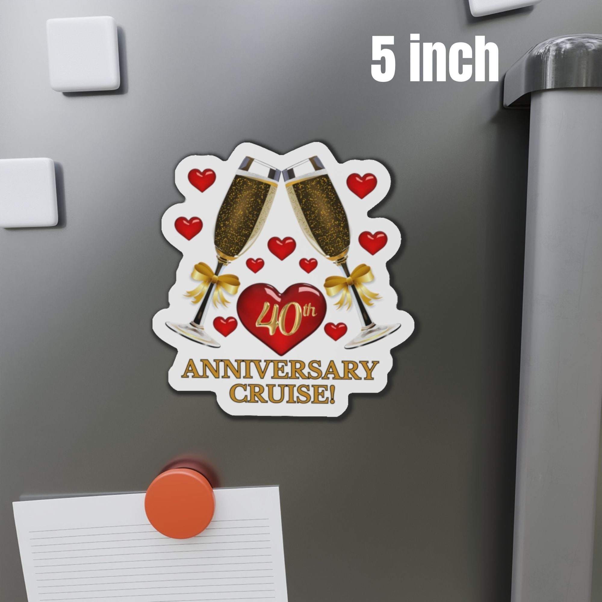 Celebrate 40 beautiful years together with this stunning 40th Anniversary Cruise Door Magnet — designed with sparkling champagne glasses, gold bows, and a bold anniversary heart to mark this unforgettable milestone at sea.
