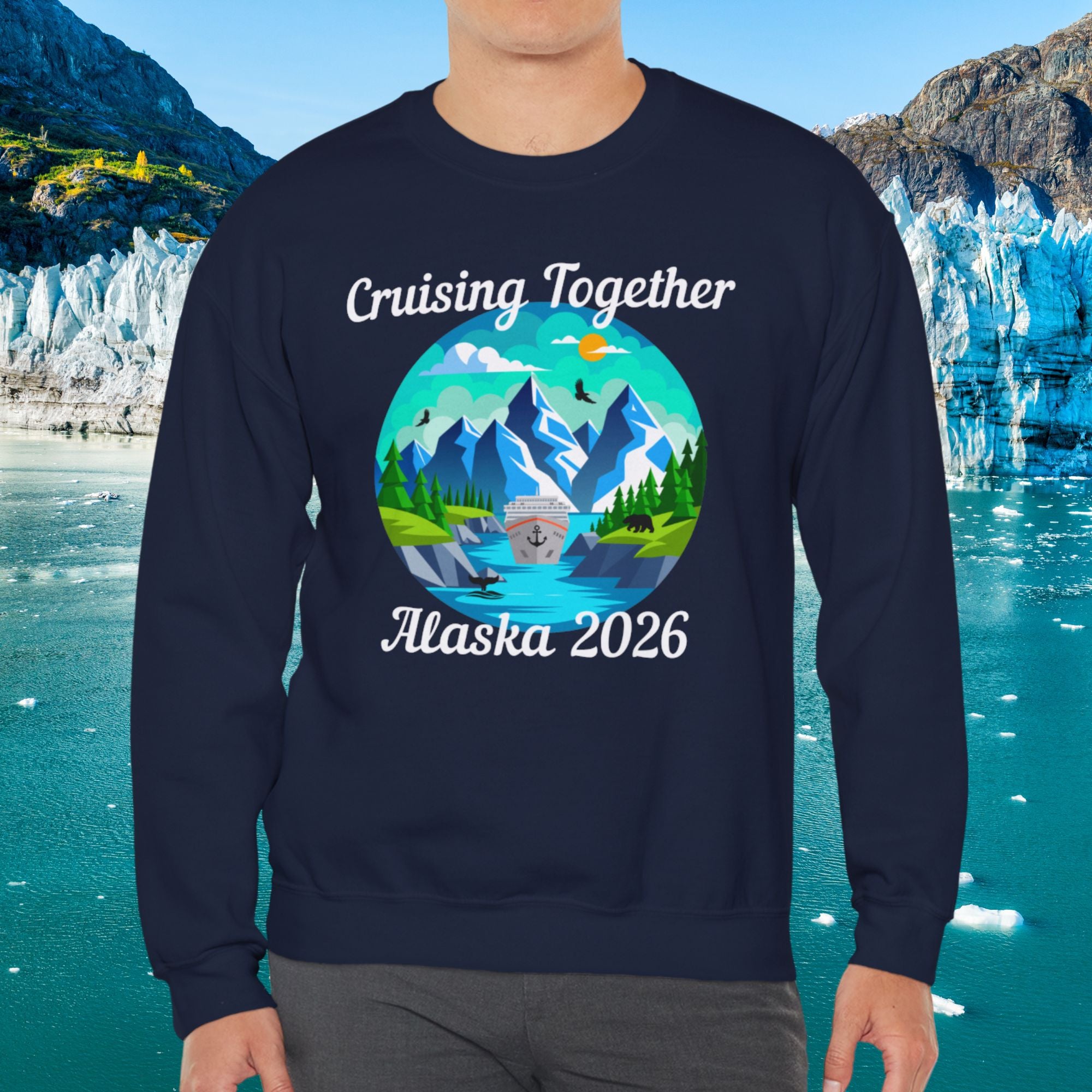 Stay warm and stylish as you embark on your Alaskan cruise adventure with this Alaska Cruising Together 2026 Sweatshirt! Featuring a stunning graphic of Glacier Bay, this design captures the breathtaking beauty of cruising together on an Alaskan voyage.