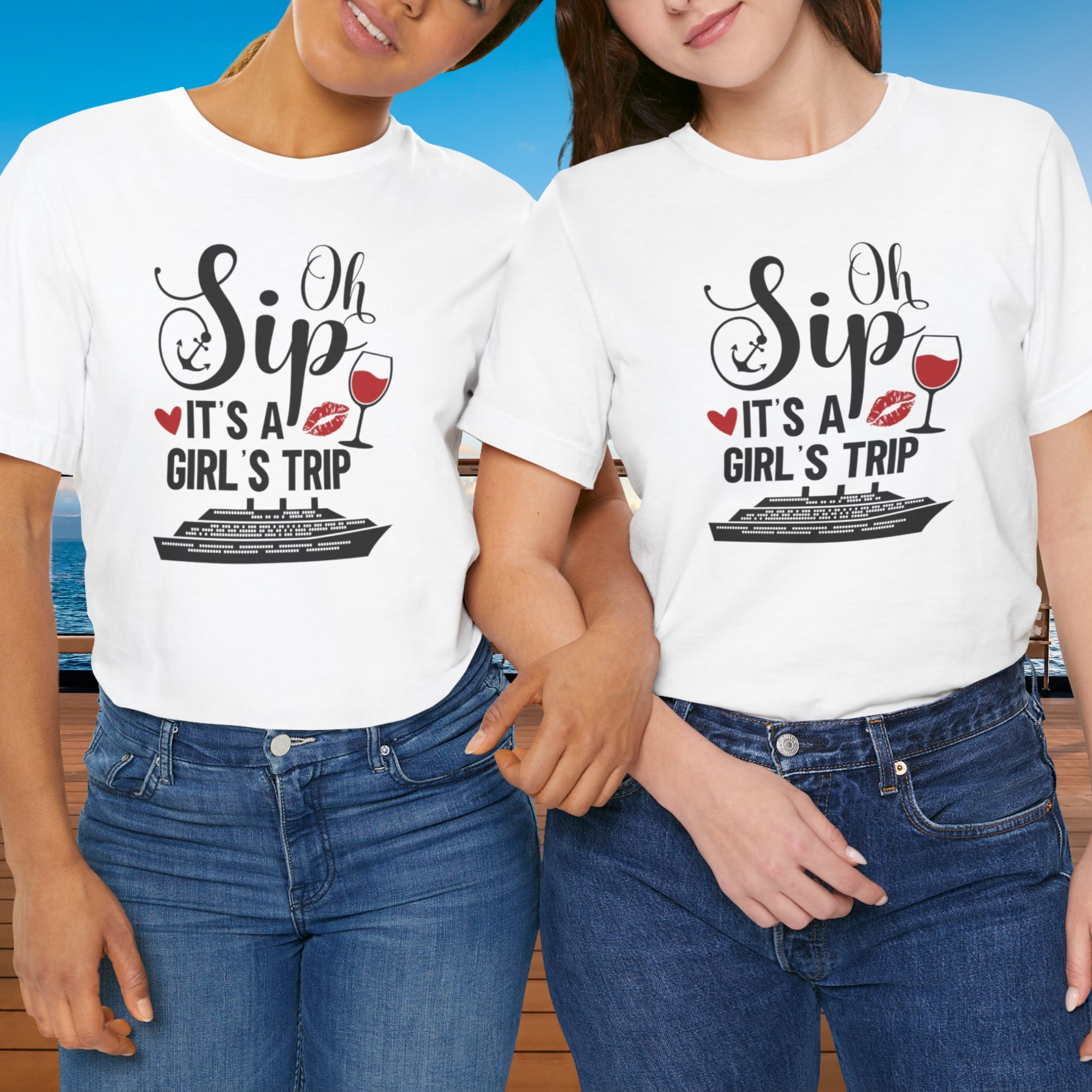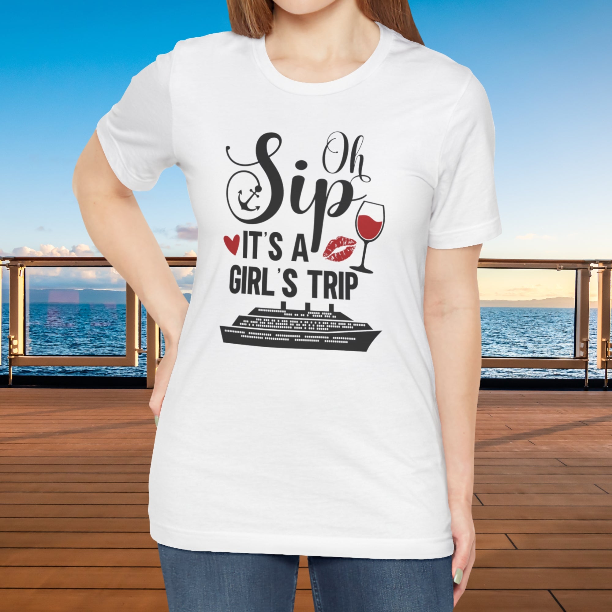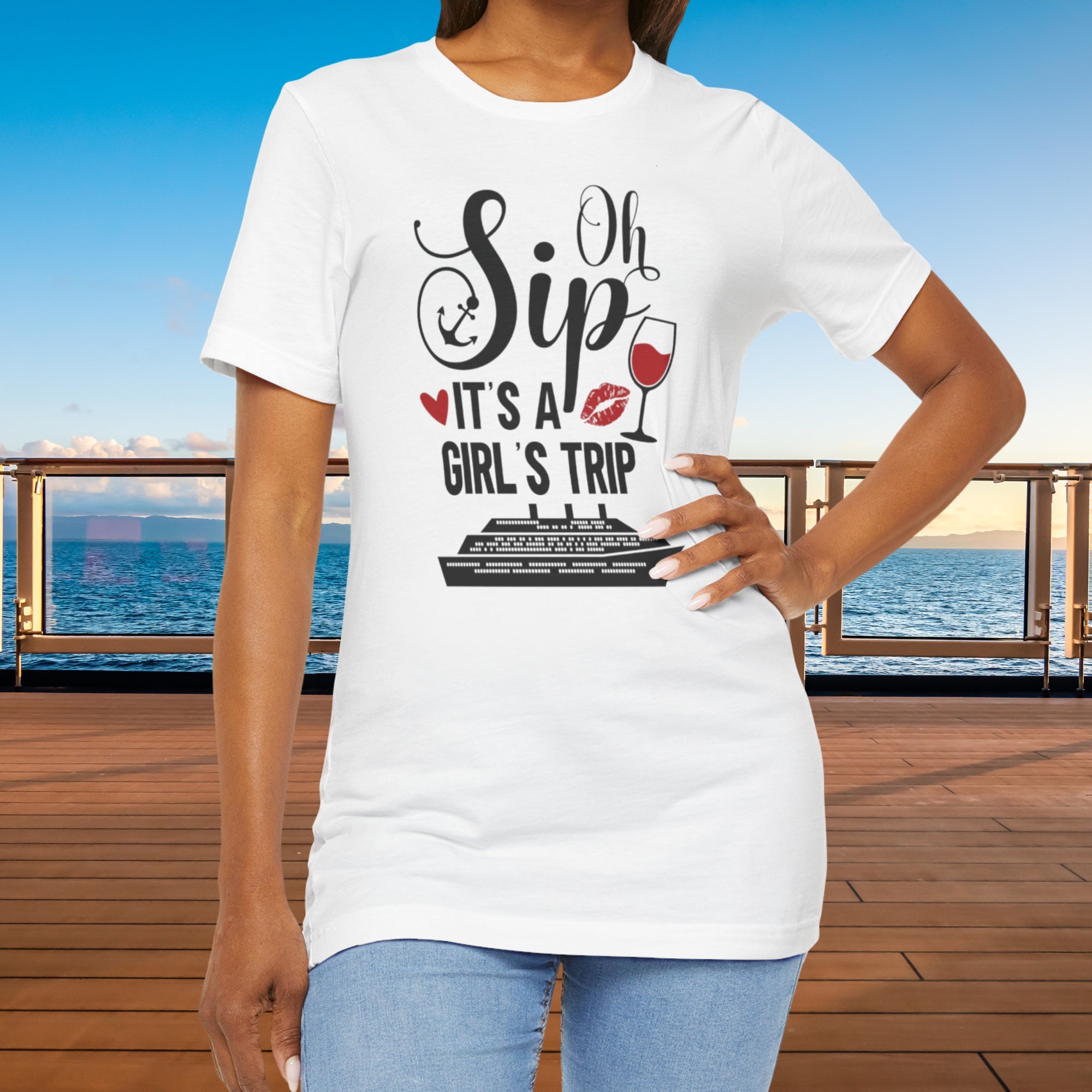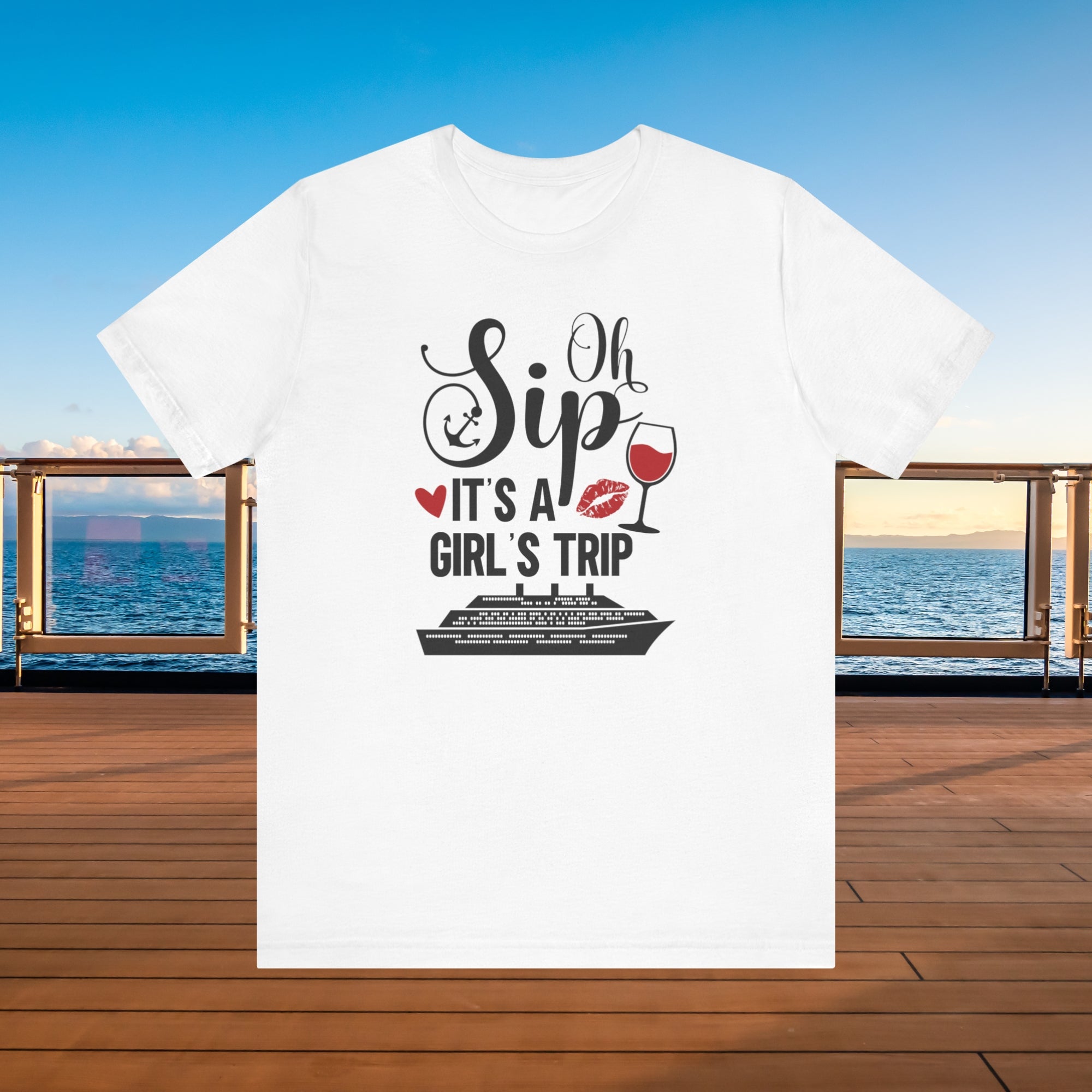 Raise your glass and get ready to sail in style! This Oh Sip! It’s A Girl’s Trip Cruise T-Shirt is the perfect tee for your next girls’ getaway at sea. Whether you’re sipping cocktails by the pool, exploring tropical ports, or capturing those unforgettable cruise photos, this comfy tee is made to celebrate friendship, fun, and vacation vibes.