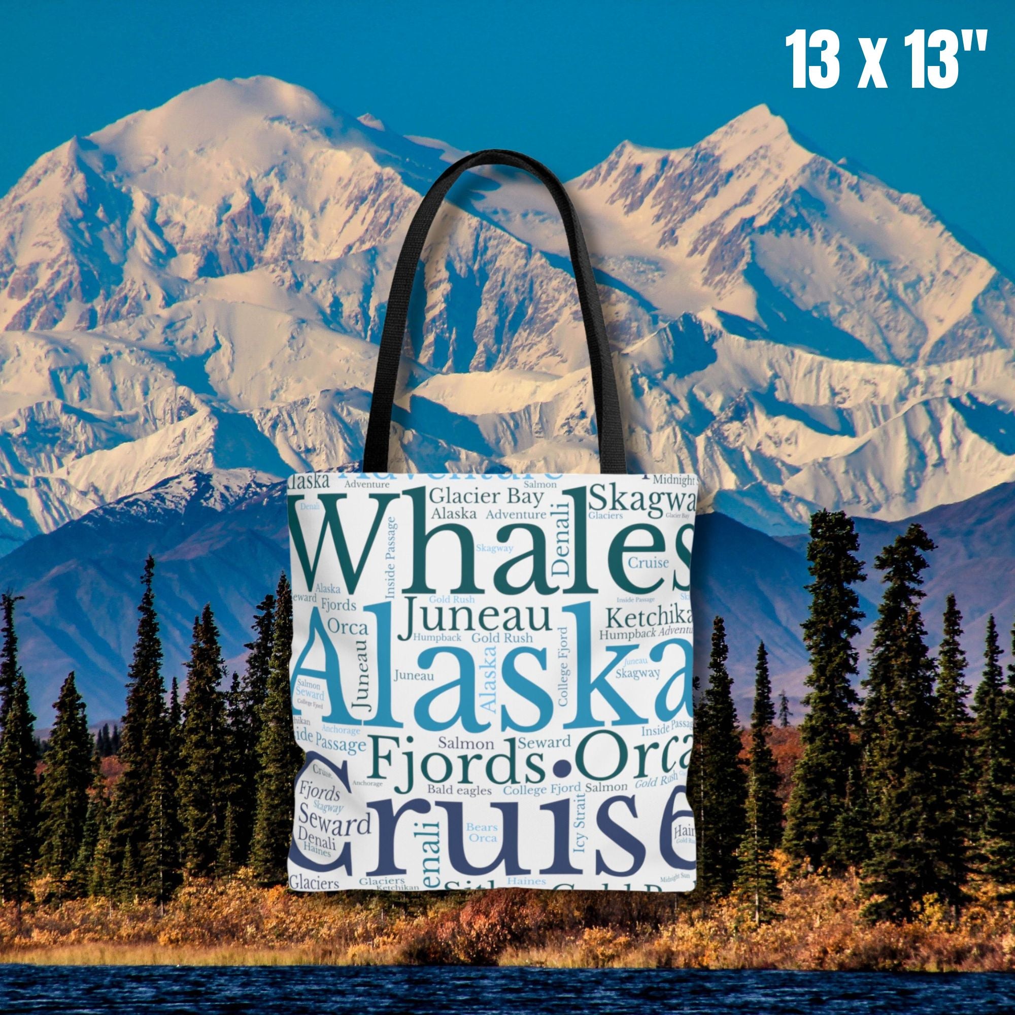 Our Alaska Cruise Tote Bag is specially designed for cruise ship enthusiasts with a love for the breathtaking beauty of Alaska! This tote bag features a captivating print of Alaska cruise words that will transport you to the awe-inspiring landscapes and adventures of the Last Frontier.