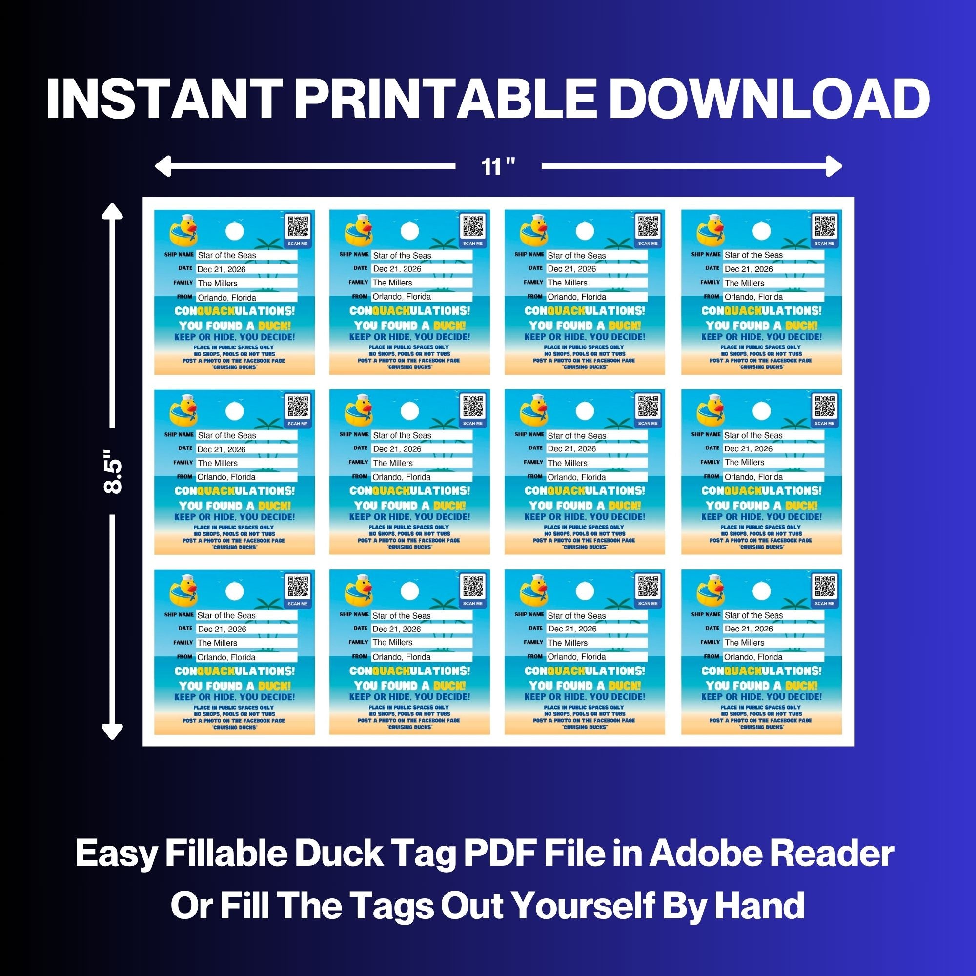 This Cruising Duck Tag Fillable PDF template is blank and Easy to Edit yourself with Adobe Acrobat Reader.
